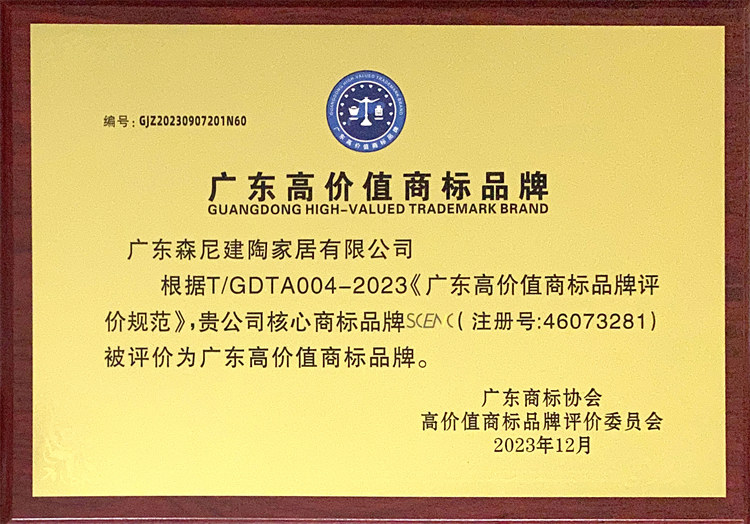 廣東省陶瓷行業(yè)百?gòu)?qiáng)高價(jià)值商標(biāo)品牌