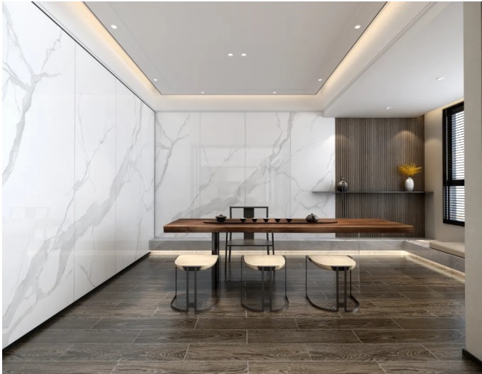 隨著消費群體逐漸年輕化,人們不再單純的關(guān)注高品質(zhì)產(chǎn)品,對產(chǎn)品設(shè)計、美學(xué),能夠裝扮出時尚高雅的空間更加注重。基于消費需求,瓷磚產(chǎn)品也緊隨時代浪潮,從設(shè)計、美學(xué)等多維度體現(xiàn)產(chǎn)品的價值。由原來的一石多面到連紋,再到任意連紋,每一次的改變,都迎來一場瓷磚變革。連紋大板,核心點是連續(xù)紋理——通過連續(xù)紋理的組合,形成大面積的圖案,無限接近大板的紋理,既有效解決了常規(guī)產(chǎn)品紋理重復(fù)的弊端,又能規(guī)避大板在運輸、應(yīng)用環(huán)節(jié)的困難,可謂一舉兩得。雖然高山,沒有大海的深邃,沒有沙漠的遼闊,但到過高山的人,都會被高山那大氣磅礴、壯麗嶙峋的景觀所征服,今生今世無法忘懷。而森尼連紋磚,將山脈連貫紋理及大氣之感,融入瓷磚設(shè)計之
