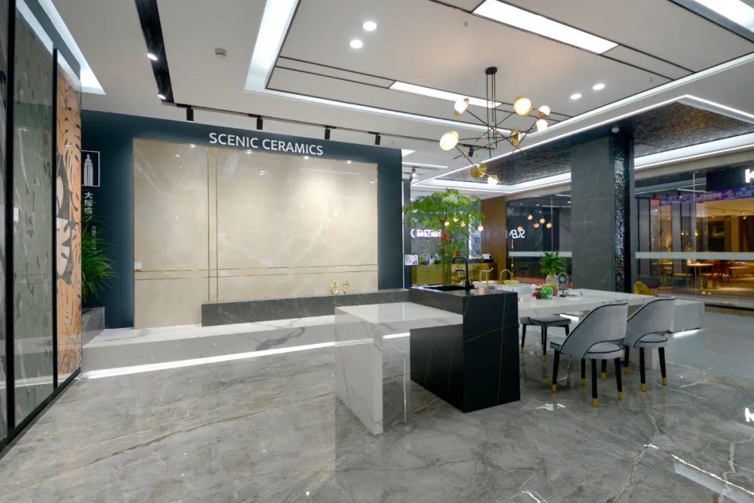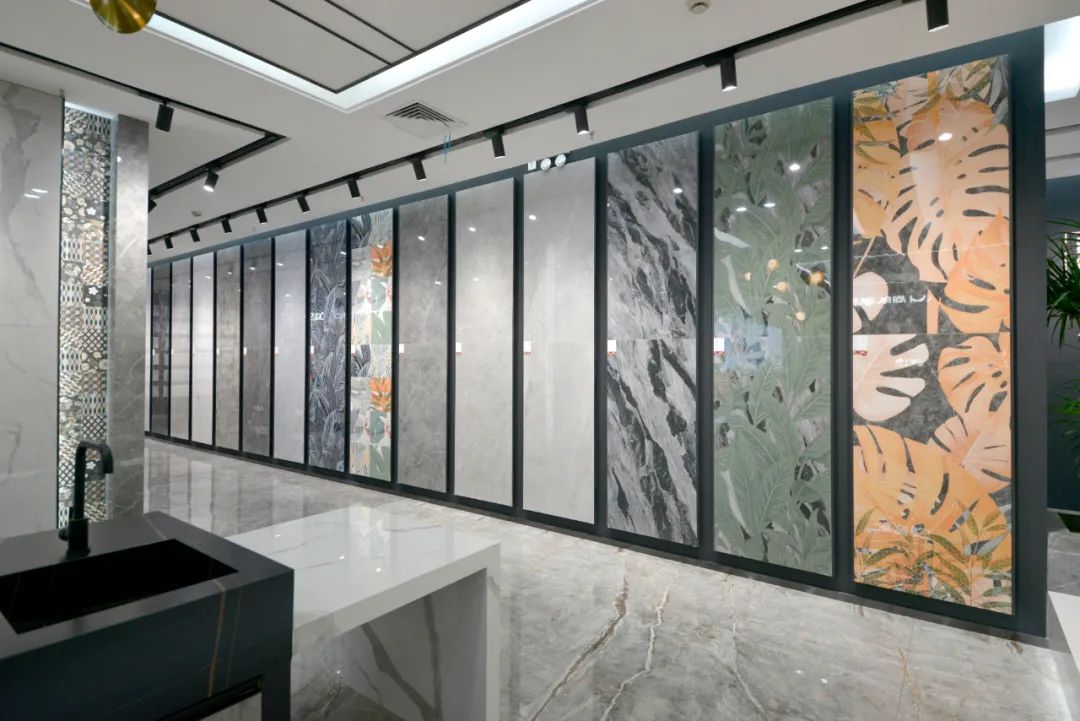 選材區(qū)涵蓋巖板、大板以及暢銷款產品,將流行元素融入瓷磚花色設計之中,每一款產品都具有時尚屬性,成為家居中的焦點。