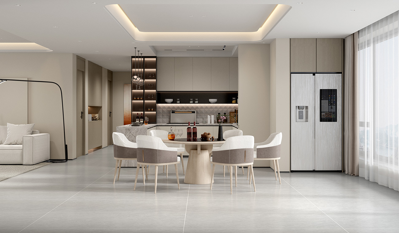 繁復精致的花紋,以及造型獨特的高級灰調(diào)流暢紋理,為空間注入理性藝術氣息,柔軟指尖觸感將硬性空間軟和,放大空間縱深尺度,彰顯產(chǎn)品品質(zhì)美學。