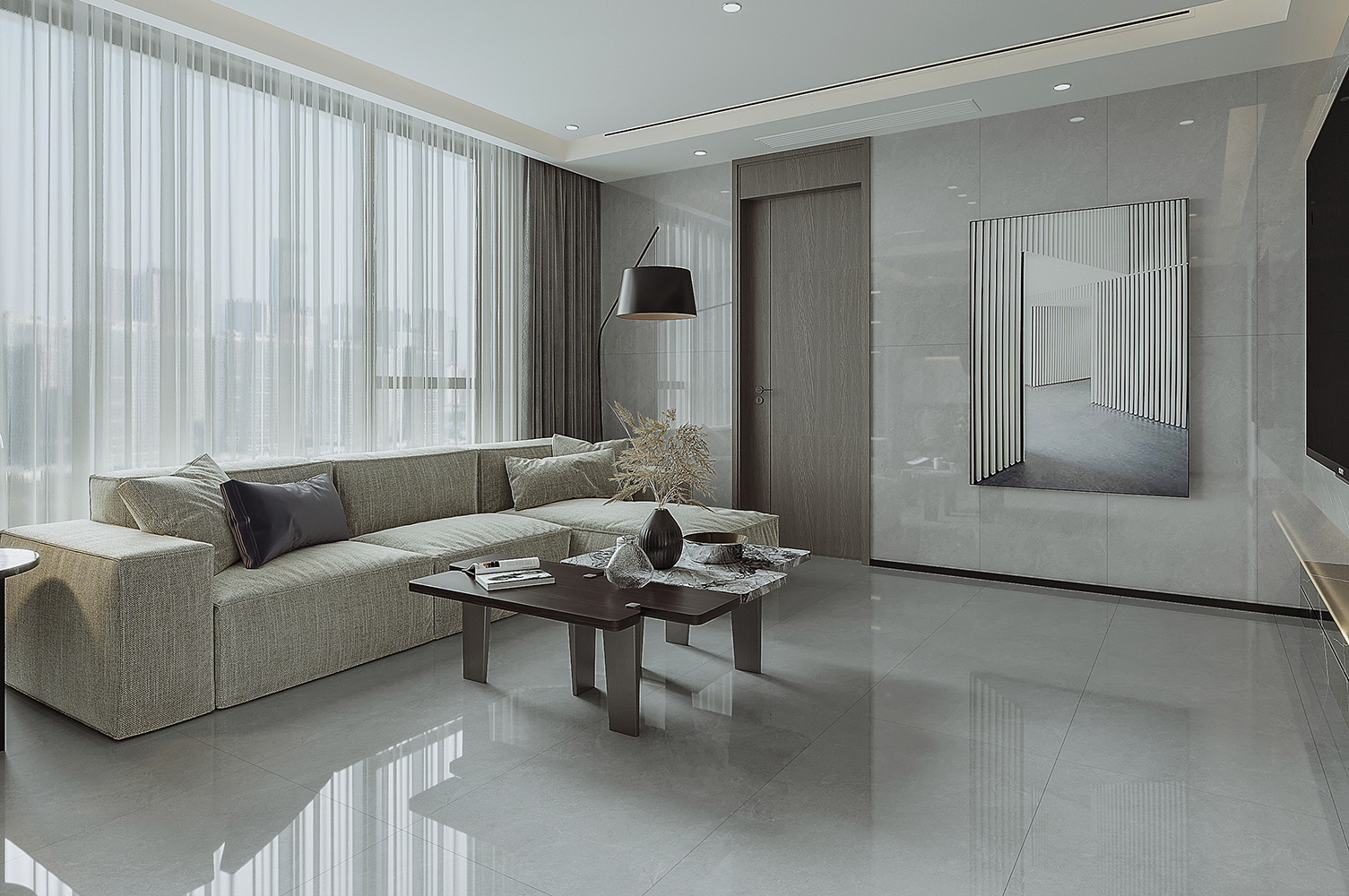 如巖石層層疊疊,以巖石流變?yōu)樵O計來源,以“層疊”為紋路走向,巖石灰韌性極強。