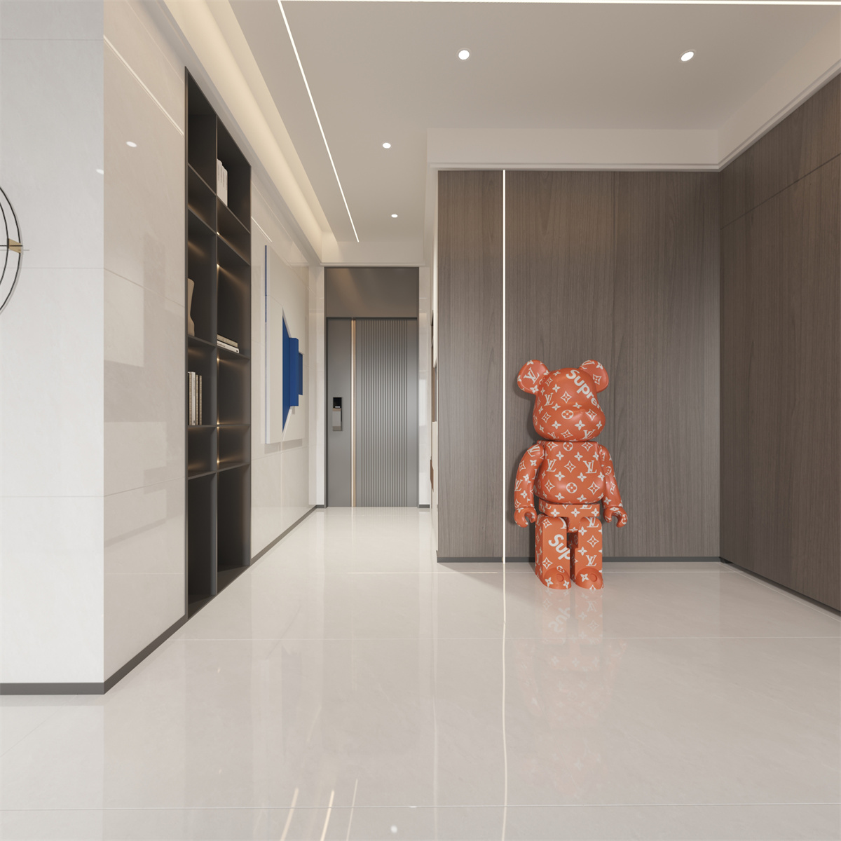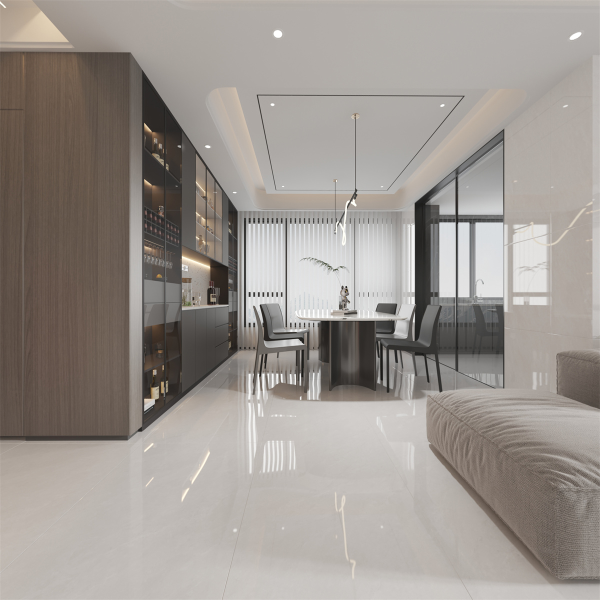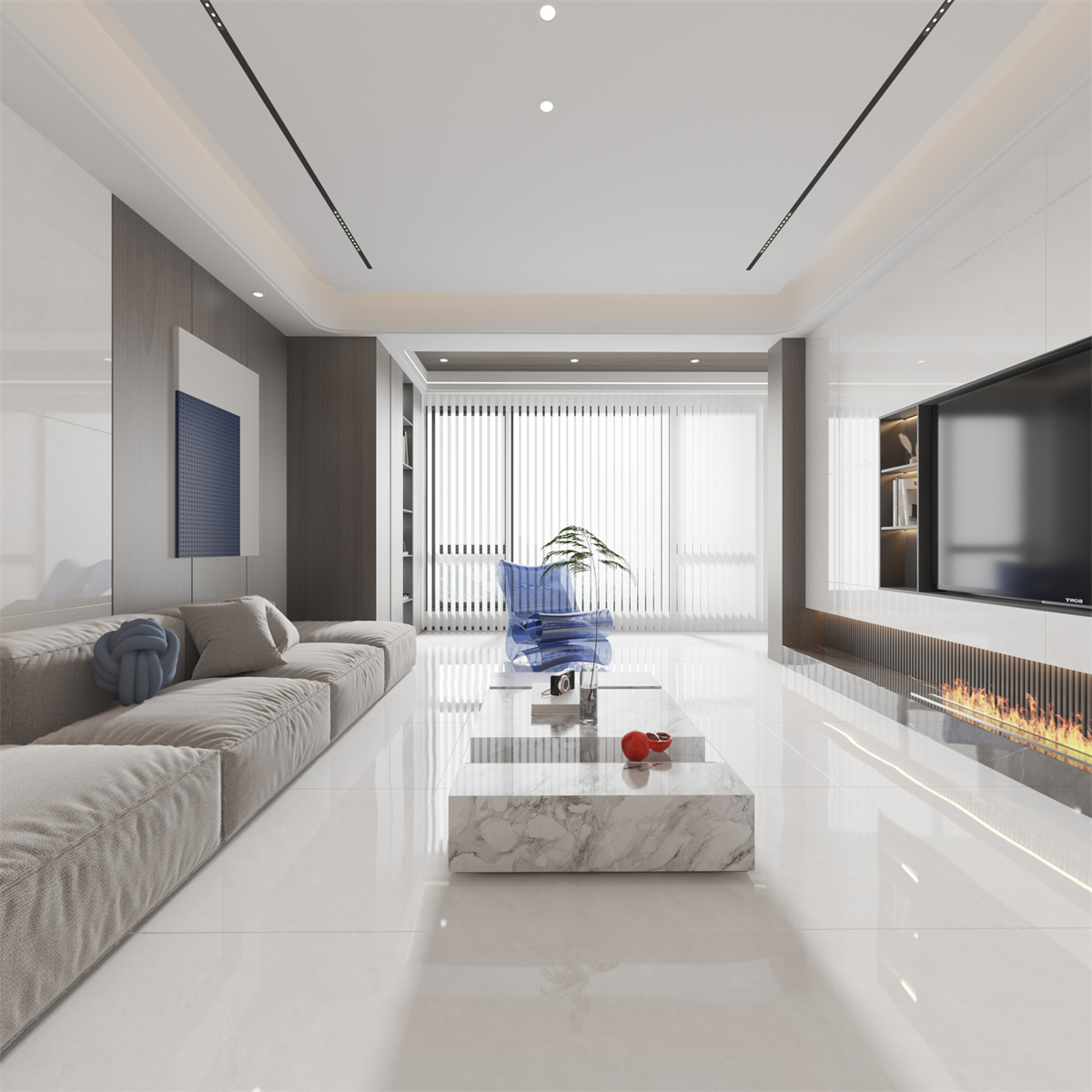 時而湍急,時而平靜,江流滋養(yǎng)著沿途風(fēng)景。大塊或片狀或帶狀留白如砂礫平原,經(jīng)流水浸潤淺灰水道,開造石材之質(zhì)樸景致。